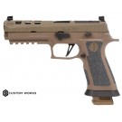 El módulo de empuñadura XFULL de alta resistencia con infusión de tungsteno TXG está en color Coyote Tan Cerakoted y tratado con carburo de silicio para proporcionar el máximo agarre en cualquier condición. Al igual que su contraparte, la P320-XFIVE LEGION, la P320-XFIVE DH3 incluye un cañón de 5" de grado de competición, una varilla guía de acero inoxidable de una sola pieza y un resorte recuperador estilo 1911 de 14 lb y 12 lb, lo que permite una experiencia de disparo fácilmente personalizable. Con (3) cargadores de acero incluidos, la 320-XFIVE DH3 está lista para cualquier aplicación que requiera velocidad, precisión y capacidad. Longitud total 216mm, longitud entre miras 168mm y cañón de 5”. Peso 1233gr