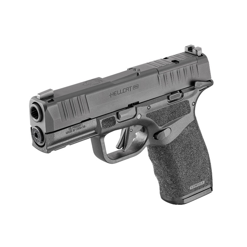 Diseñado con el uso de ópticas de punto rojo en mente, el Hellcat® Pro presenta una configuración OSP™ (pistola con mira óptica). La corredera está fresada con la huella Springfield Micro™, diseñada para aceptar los puntos rojos más pequeños y populares del mercado.