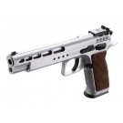 Único modelo Tanfoglio con cañón a 6 pulgadas, cuenta con un nuevo acabado superficial, opaco, resistente que destaca las nuevas geometrías de aligeramiento de la corredera.