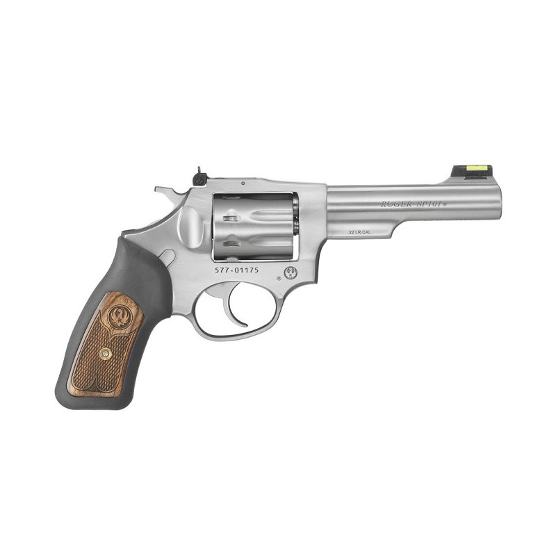 El SP102 en .22 LR cuenta con alza ajustable en altura y deriva con contorno blanco, un punto de mira de fibra óptica y las empuñaduras de goma SP101 de tamaño completo originales con insertos de madera dura para una apariencia muy distintiva. La construcción totalmente de acero inoxidable hace que este SP101 sea un arma de fuego fácil de mantener y que seguramente se transmitirá de una generación a la siguiente.